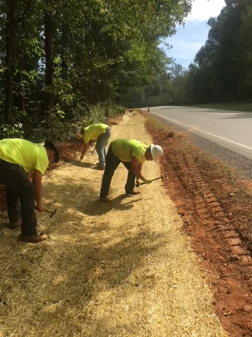 We follow GSWCC guidelines when installing permanent or temporary grassing to prevent soil erosion. We choose grass seed based on season and specific job site conditions, and install mulch hay to ensure proper vegetation growth.